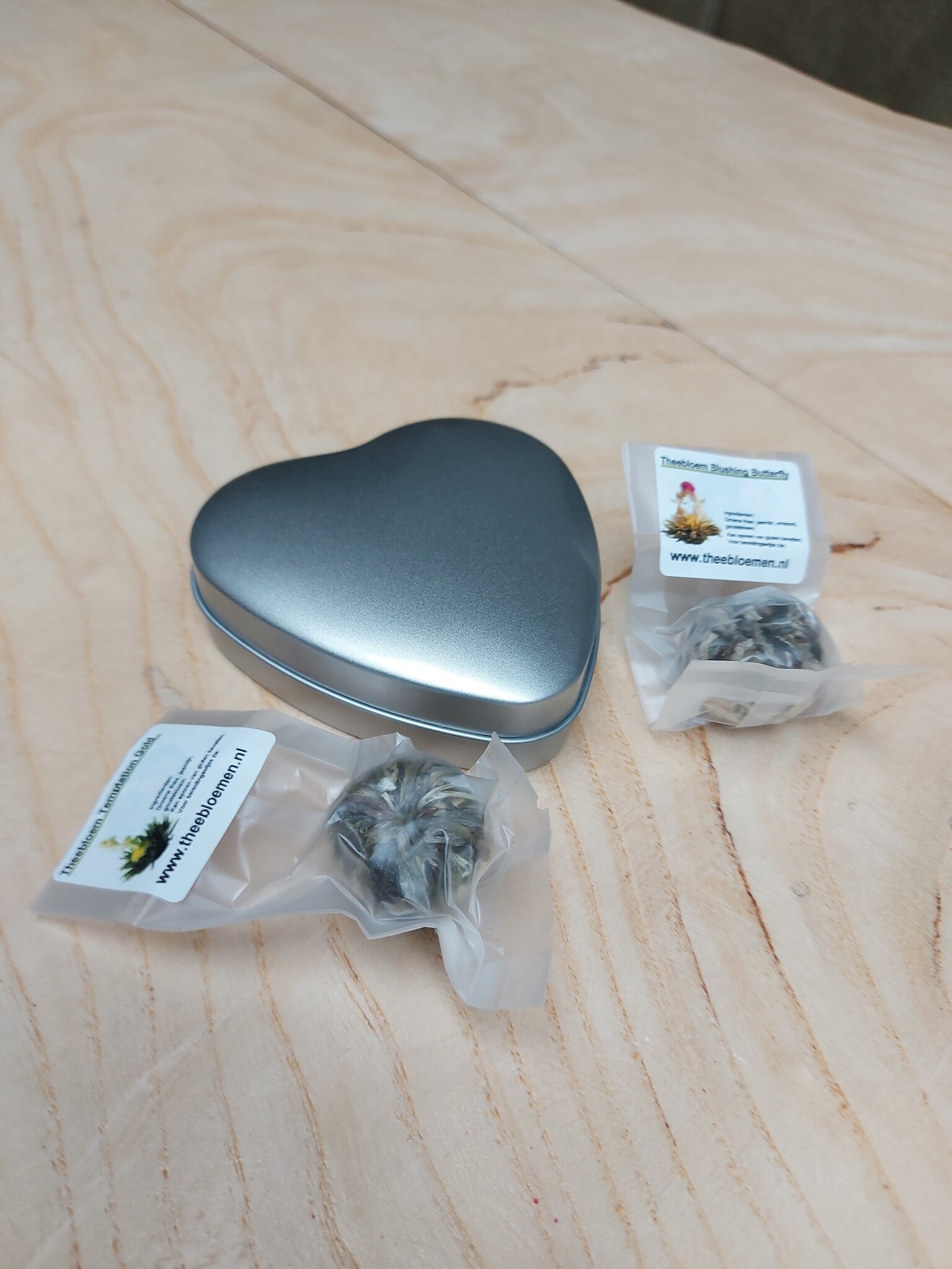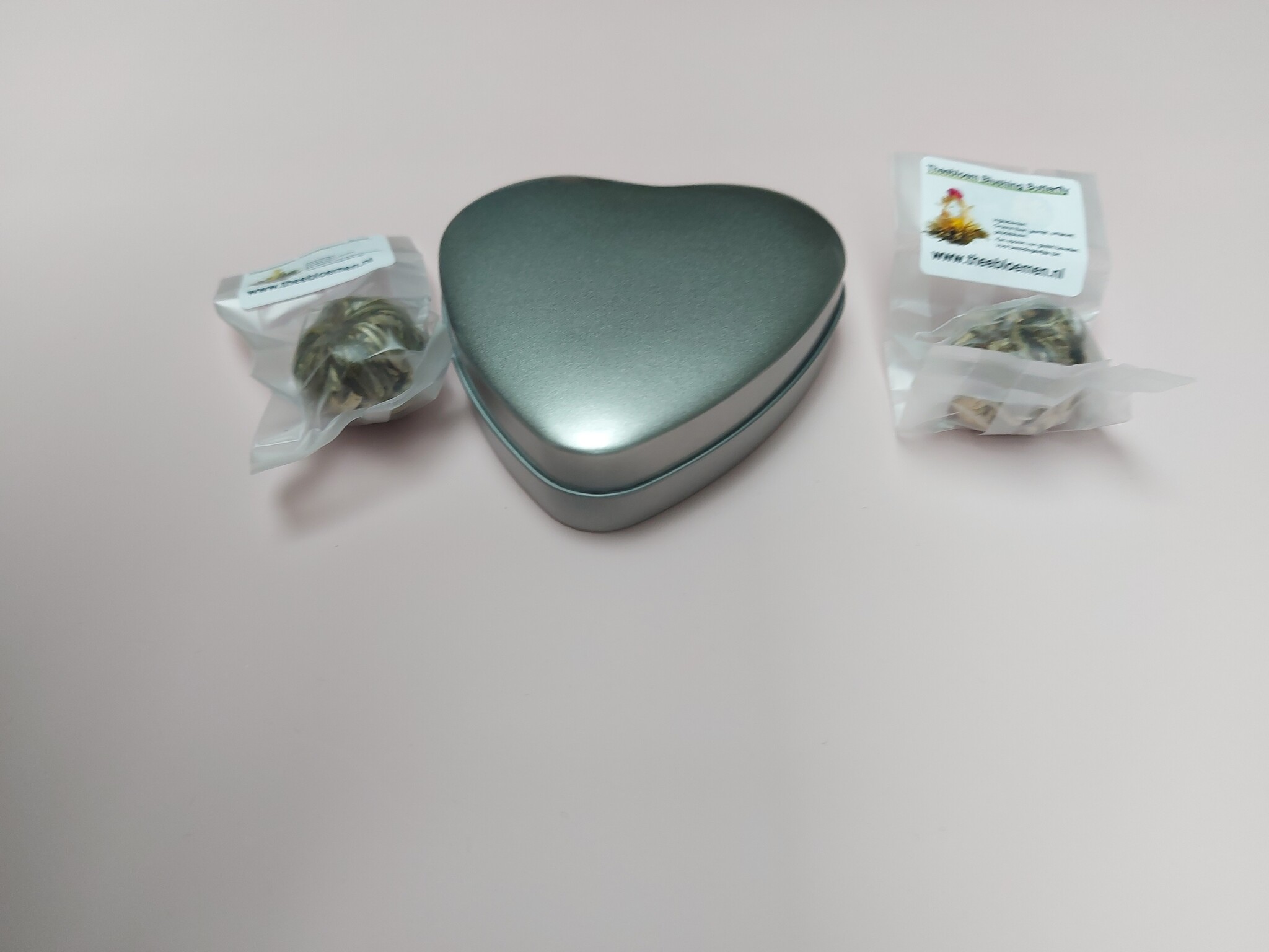 Het hartvormige blikje kan worden gevuld met losse thee of 2 theebloemen, waardoor je het cadeau helemaal naar wens kunt samenstellen .De theebloemen zorgen voor een verrassend en romantisch theemoment, terwijl losse thee uitnodigt tot ontspanning en genieten.