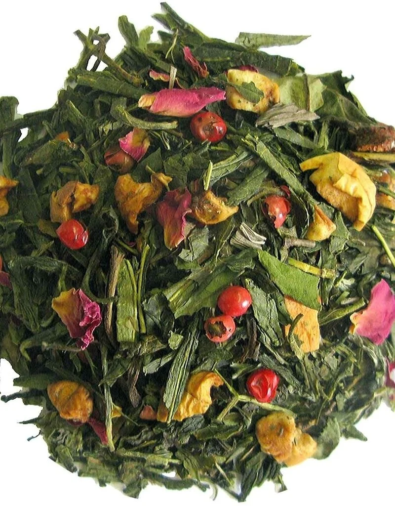 Ingrediënten: Groene thee, appel, Witte thee, aroma, rosa peper, weegbree, rozenblaadjes.